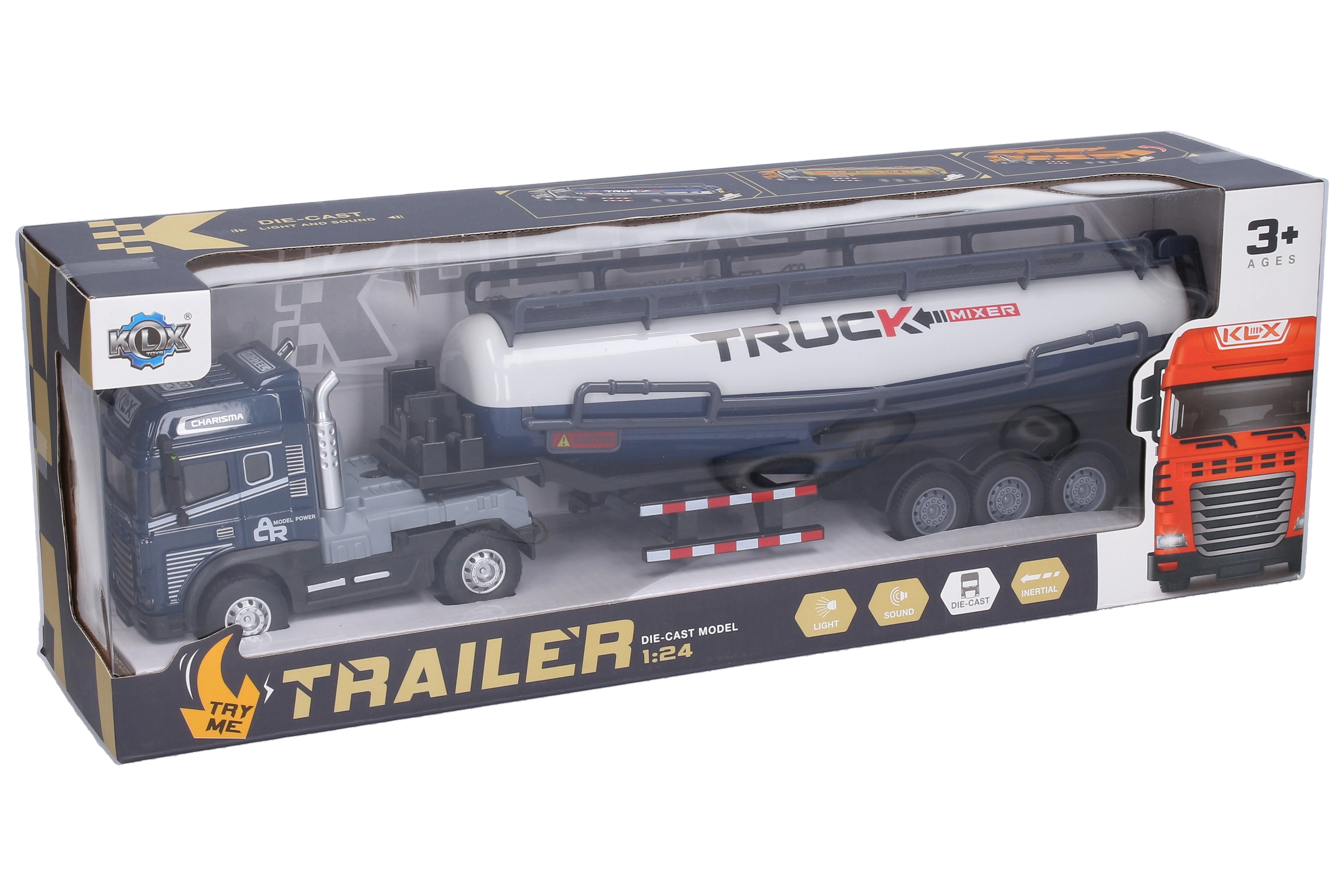 Modelul este echipat cu semiremorcă detașabilă și o manetă practică pentru blocarea semiremorcii, astfel încât copiii pot exersa manevre realiste la încărcare și descărcare. Părțile metalice asigură o durabilitate sporită și o durată de viață îndelungată – ideal pentru joaca de zi cu zi.