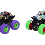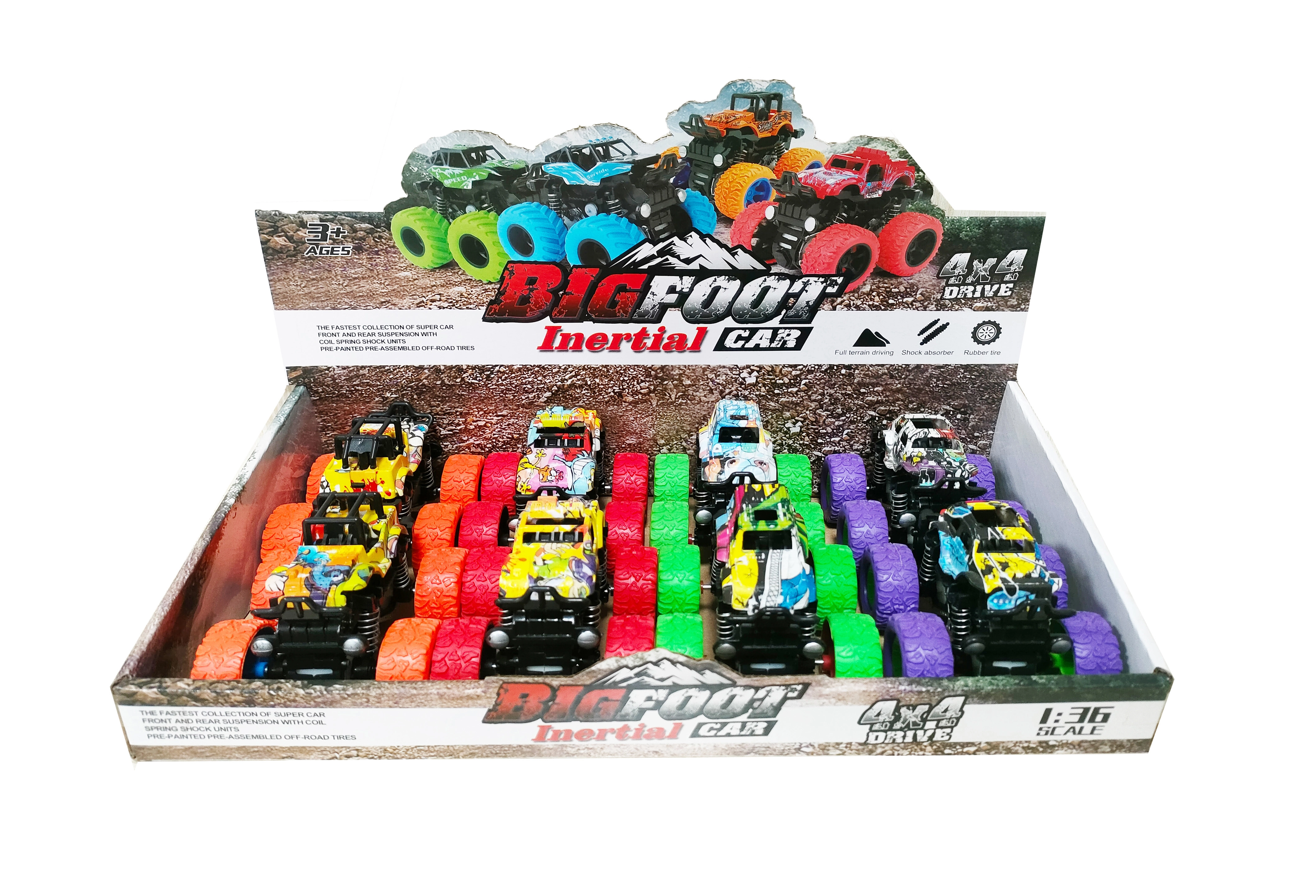 Descoperă distracția la maxim cu aceste mini monster truck-uri cu mecanism cu volantă! Dimensiunile compacte și designul graffiti expresiv le fac o alegere excelentă pentru copiii care iubesc acțiunea. Datorită roților mari pentru teren accidentat și construcției rezistente, trec peste mici obstacole și oferă multă distracție atât în interior, cât și afară.