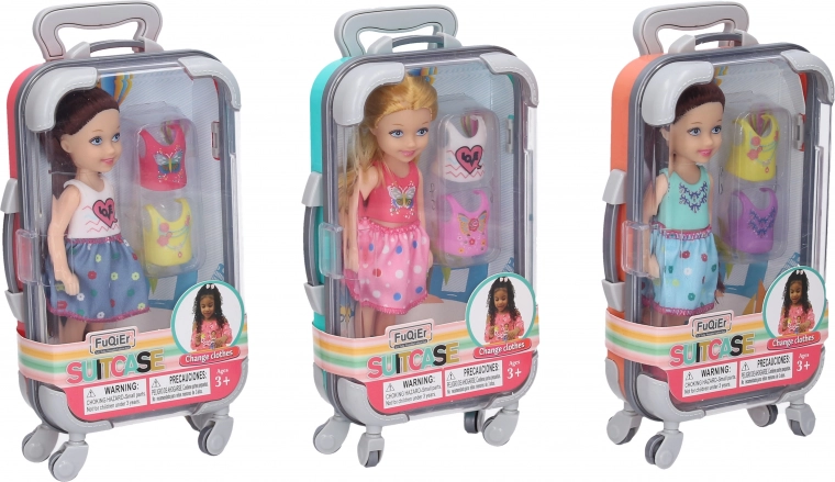 O păpușă drăgălașă într-o valiză practică va bucura orice copil, atât în călătorii, cât și acasă. Pachetul conține o păpușă de 14 cm și două tricouri de schimb pentru schimbări rapide de ținută. Valiza de 20 cm facilitează depozitarea și transportul, iar distracția este extinsă de 3 variante diferite de aspect.