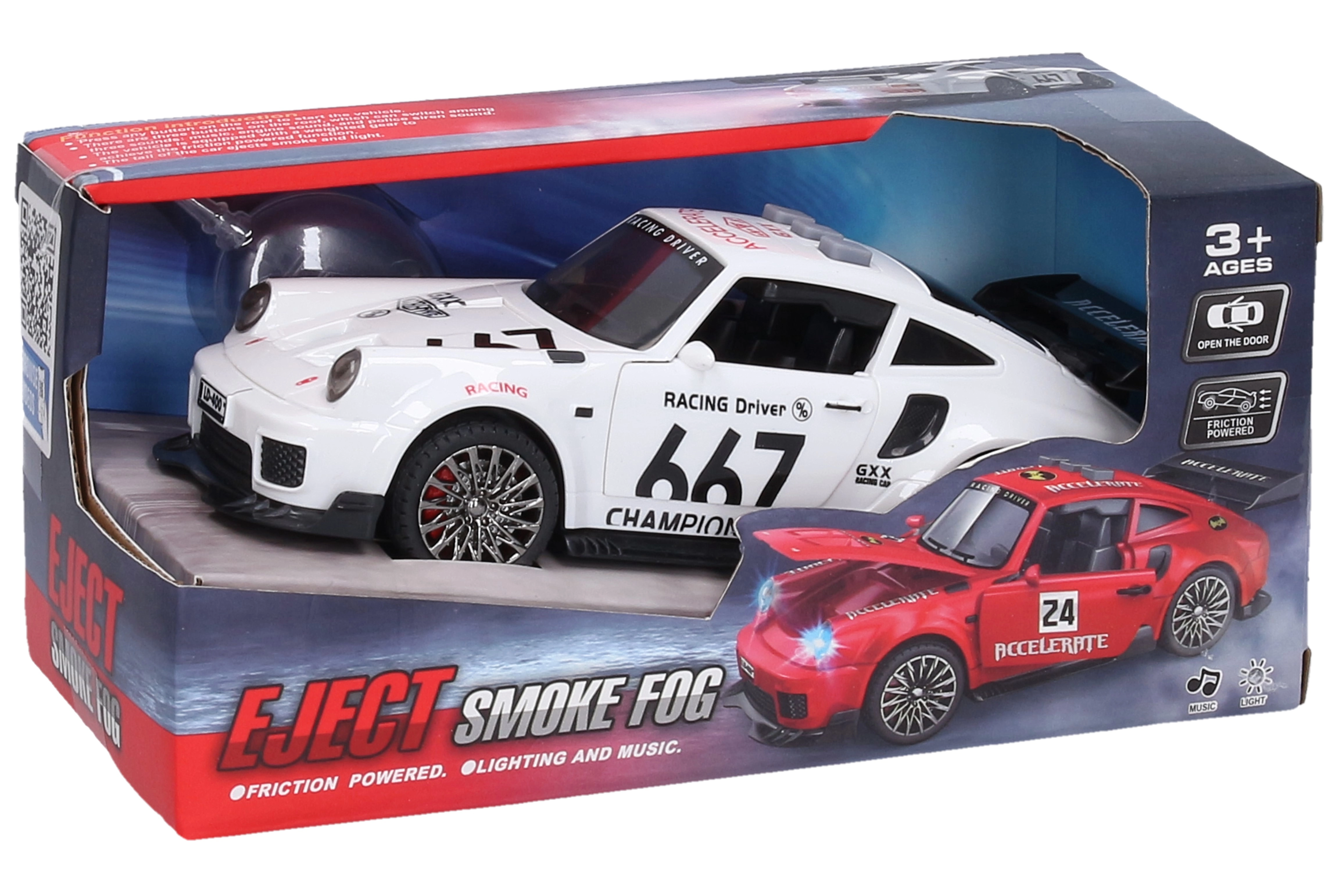 Bucură-te de o cursă plină de acțiune cu această mașină de curse compactă de 15 cm, care oferă efecte luminoase, sunete și impresionante efecte de fum. Datorită capotei și ușilor care se deschid și activării efectelor prin butoanele de pe acoperiș (sunet de motor, sirenă, muzică), este o alegere excelentă pentru fanii vitezei, mici și mari.