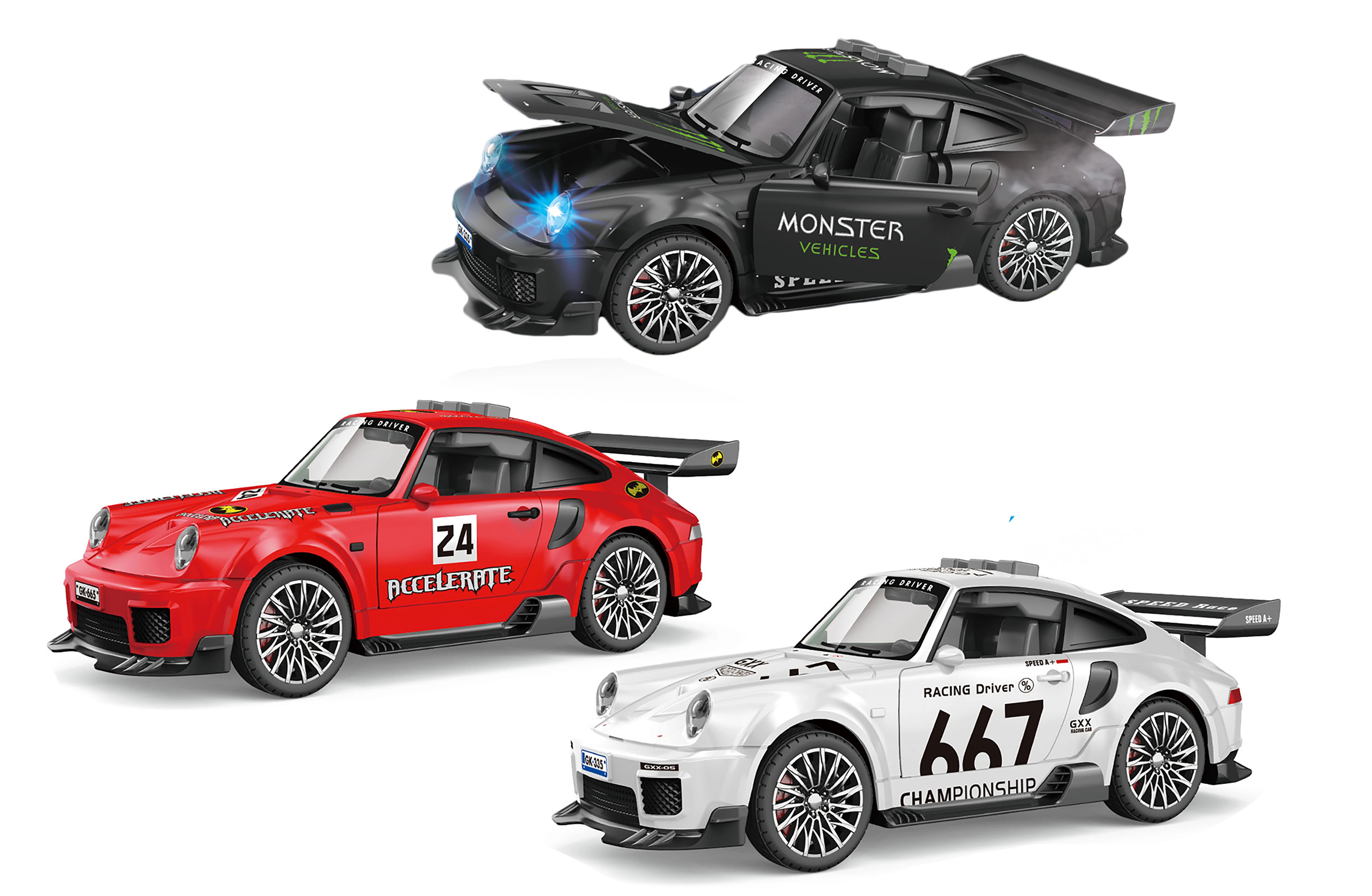 Efectele se activează ușor prin butoanele de pe acoperiș – alege sunetul motorului, sunetul sirenei sau muzica. Datorită dimensiunii practice, mașina este ideală pentru călătorii și curse acasă. Disponibilă în trei variante de culoare: roșu, negru și alb.