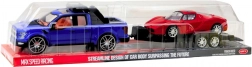 Remorca cu două axe permite încărcarea și descărcarea ușoară a mașinii sport. Pickup-ul off-road tractează remorca fiabil și extinde posibilitățile de joc.