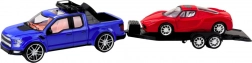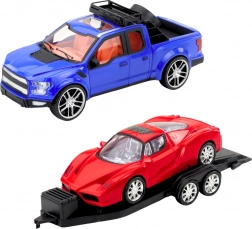 Acest set versatil combină un pickup albastru cu remorcă cu două axe și o elegantă mașină sport roșie. Copiii pot încărca, transporta și descărca vehiculul cu ajutorul rampei, pot crea scenarii de curse și își pot dezvolta imaginația, motricitatea fină și coordonarea.