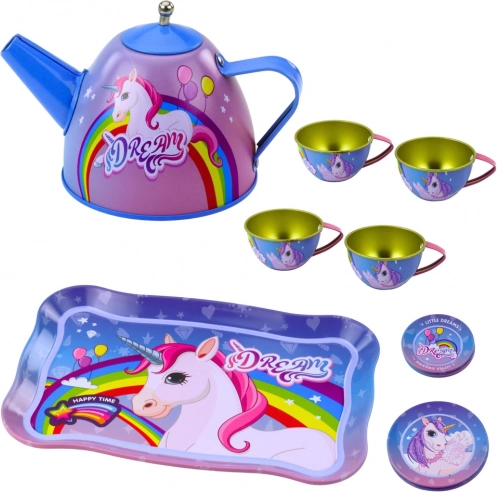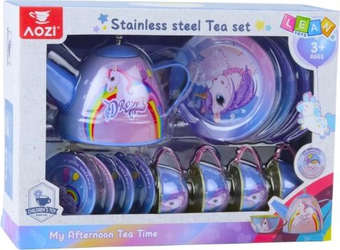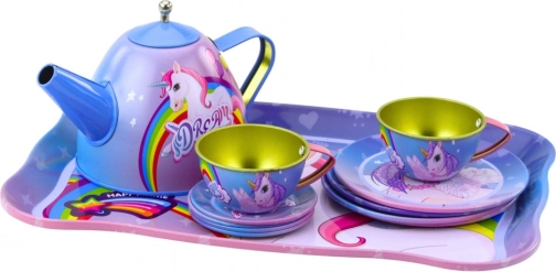 Setul fermecător de ceai din metal cu motiv unicorn oferă copiilor ore întregi de joacă creativă. Este confecționat din metal rezistent, fiind sigur, solid și durabil. Designul colorat susține dezvoltarea imaginației și învățarea jocului în comun – ideal pentru petreceri de ceai cu prieteni, păpuși și plușuri.