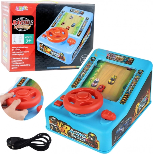 Trăiți emoția pistei de curse chiar acasă! Simulatorul interactiv de condus, cu volan, manetă de schimbare a vitezelor și ecran color, îi poartă pe copii în lumea curselor pline de acțiune. Sunete realiste de motor, claxon și fundal muzical intensifică atmosfera, în timp ce controlul simplu sprijină dezvoltarea atenției și coordonării. Datorită construcției solide și sigure și alimentării cu baterii AA sau prin cablu USB, jucăria este perfectă atât pentru camera copilului, cât și pentru călătorii.