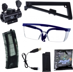 Modelul MK7 îi va încânta pe toți cei care iubesc acțiunea. Datorită bateriei Li de 7,4 V, este gata pentru jocuri îndelungate fără pauze inutile. Încărcătoarele interschimbabile permit o schimbare rapidă a muniției, în timp ce vizorul optic ajută la lovituri mai precise. Patul rabatabil conferă armei un caracter tactic și o ajustare confortabilă pentru jucător.