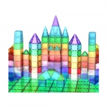 Acest set de construcție magnetic îmbină distracția cu învățarea. Datorită îmbinărilor magnetice ferme, copiii creează ușor construcții stabile 2D și 3D – de la acoperișuri simple până la castele și case elaborate. Piesele translucide, în culori vii, stimulează imaginația și simțul estetic.