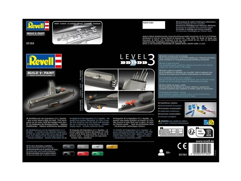 Model din plastic detaliat al navei U.S.S. Nautilus la scara 1:305, pentru pasionații de machetism. Ideal pentru asamblare și vopsire individuală, un proiect grozav atât pentru începători, cât și pentru avansați.
