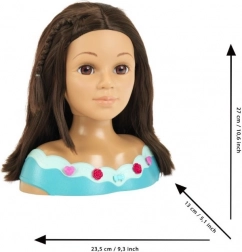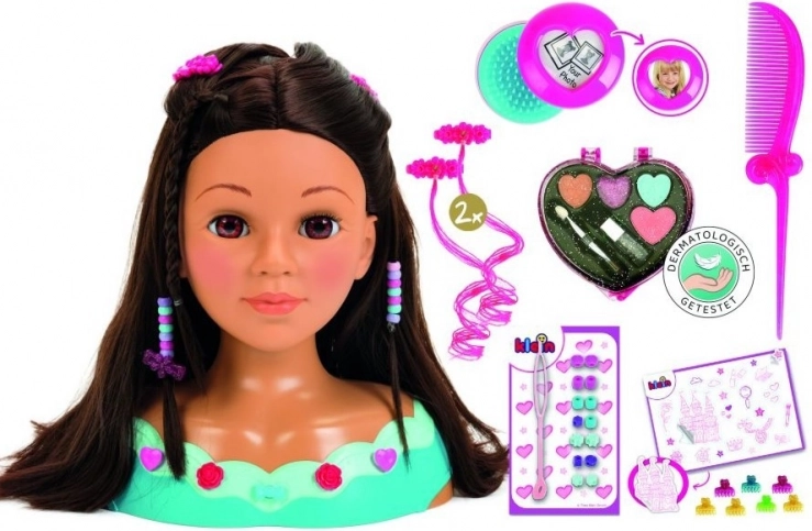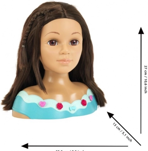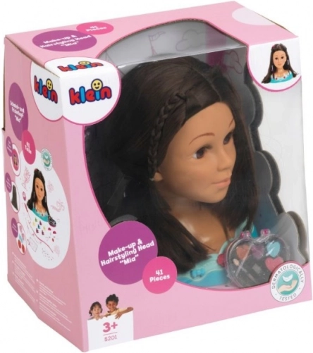Capul de coafat și machiat Mia oferă tot ce au nevoie micii coafori și stiliști. Părul lung, lavabil poate fi pieptănat, periat, împletit și decorat cu agrafe sau mărgele. Cosmeticele incluse pentru copii sunt testate dermatologic, fiind sigure pentru joacă și pentru pielea delicată a copiilor.