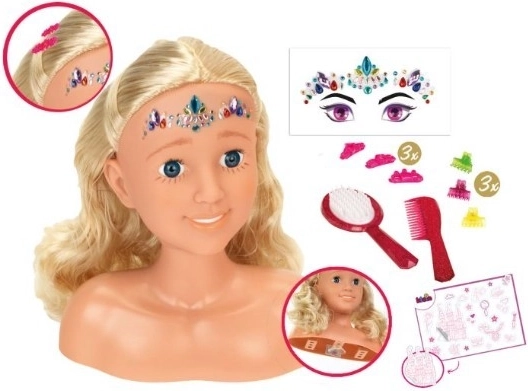 Capul pentru coafat și stilizat Sara este alegerea perfectă pentru micile coafeze și make-up artiști. Părul blond lung, realist, se descurcă ușor și își păstrează forma, astfel încât copiii pot crea împletituri, onduleuri și cocuri de ocazie. Fața netedă este ideală pentru decorare sigură cu pietricelele autocolante incluse și cu „inima cosmetică” testată dermatologic.