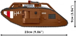 Acest model realizat cu precizie al legendarului tanc britanic MARK V (Male) este bazat pe piesa autentică de muzeu nr. 9199 de la The Tank Museum din Bovington. Datorită scării 1:35 se potrivește perfect cu figurinele și alte modele COBI. Inscripții durabile fără abțibilduri, mecanism funcțional al șenilelor și detalii atent lucrate îl transformă într-o piesă atractivă pentru colecție.