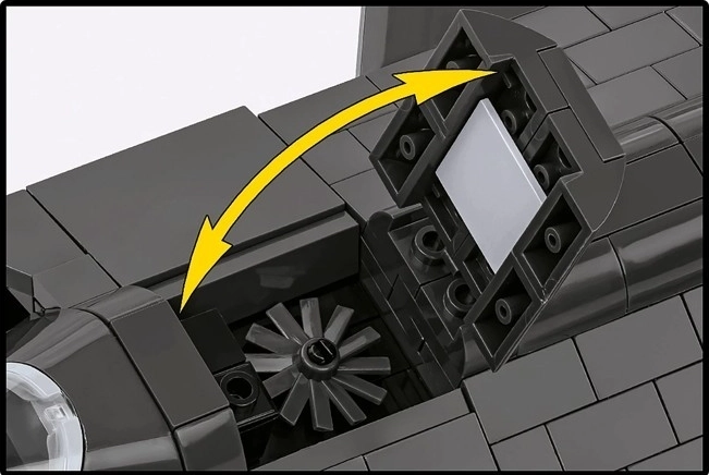 Include o minifigurină de pilot în combinezon verde de zbor, cu cască și mască de oxigen – pregătită pentru cabina deschisă sau pentru expunere lângă model.