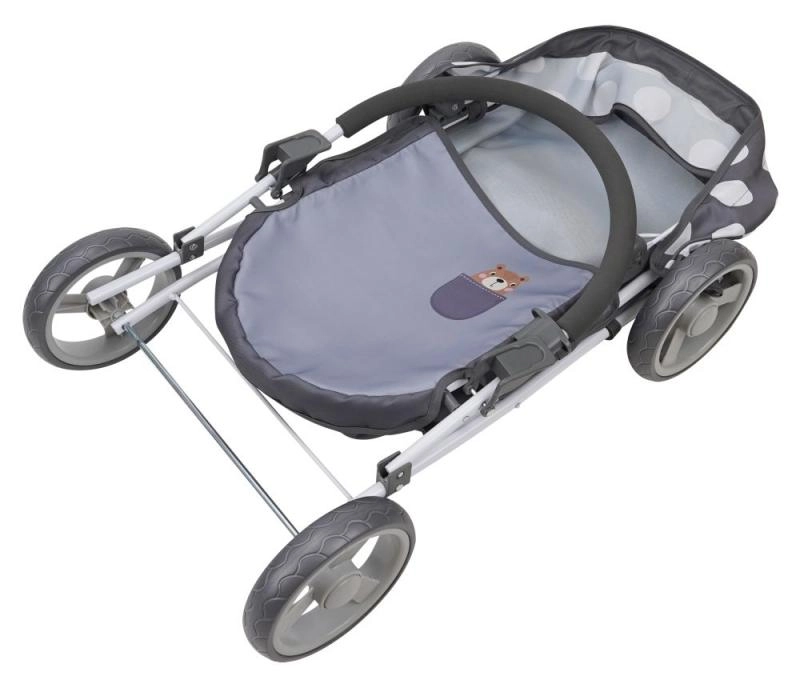 Cărucior stilat pentru păpuși cu motiv Veverița va încânta orice mică îngrijitoare. Oferă un cadru pliabil pentru depozitare ușoară, mâner moale din spumă și capotină retractabilă pentru joacă confortabilă acasă și afară. Potrivit pentru păpuși de până la aprox. 46 cm și dotat cu coș de cumpărături practic și geantă.