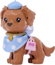 Rochia cu buline, bereta și accesoriile păpușii sunt asortate cu adorabilul cățeluș pentru un duo fashion impecabil.