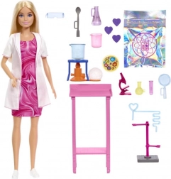 Păpușa Barbie în rolul de cercetătoare îi inspiră pe copii să descopere chimia, biologia și astronomia. Datorită accesoriilor realiste, precum ochelarii, paharele și microscopul, iau naștere scenarii autentice, iar cei mici pot experimenta în siguranță în lumea imaginației.