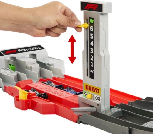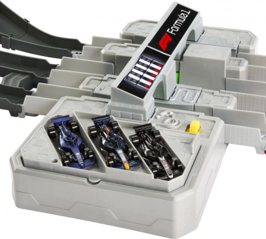 Intră în lumea duelurilor la mare viteză cu pista Hot Wheels inspirată de circuitele urbane de Formula 1. Copiii lansează până la trei modele metalice F1 prin puternicul accelerator cu trei benzi, parcurg viraje înclinate și diferențe de nivel, iar câștigătorul este decis la trecerea prin poarta de sosire cu contor de ture.