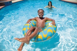 Vinilul non-toxic cu grosimea de 0,23 mm rezistă solicitărilor verii și asigură utilizare îndelungată atât în piscină, cât și la mare.