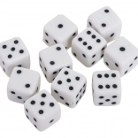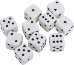 Setul conține 10 zaruri albe cu puncte negre pentru lizibilitate clară și utilizare universală.