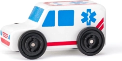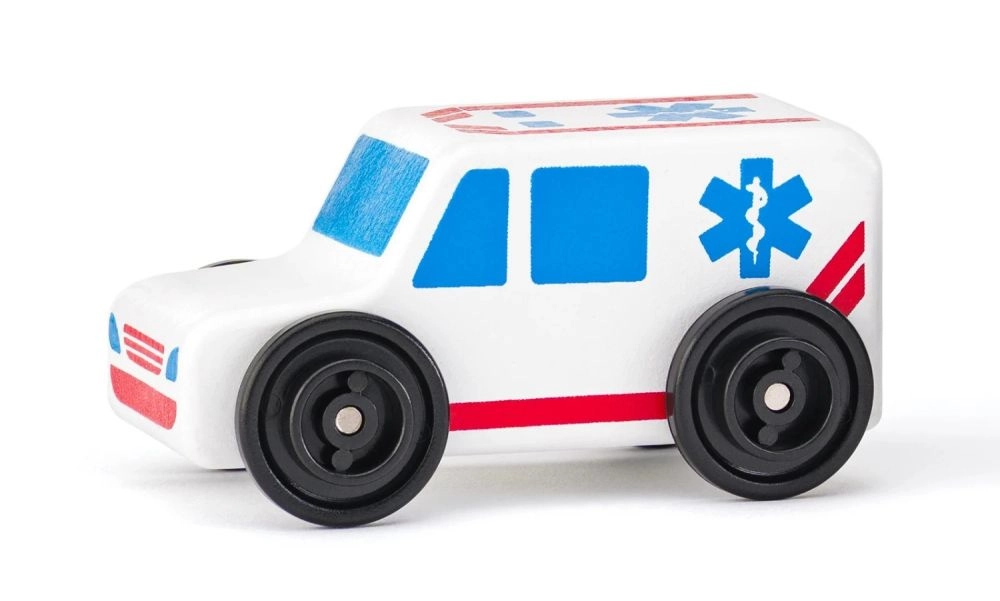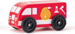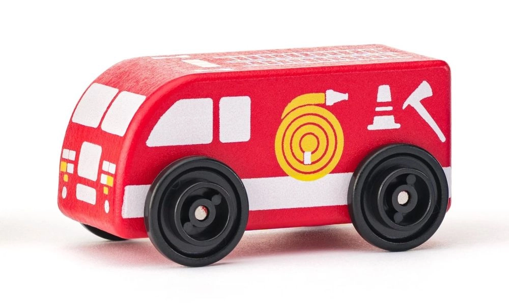 Ambulanță, mașină de pompieri, poliție, taxi, autobuz și dubă – șase roluri diferite pentru joc imaginativ și pentru a învăța despre munca serviciilor de intervenție și a transportului.