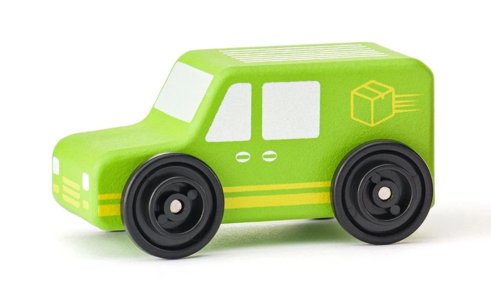 Caroserie solidă din lemn, cu imprimeu rezistent, concepută pentru joaca de zi cu zi, ajutând la dezvoltarea motricității fine și a coordonării.