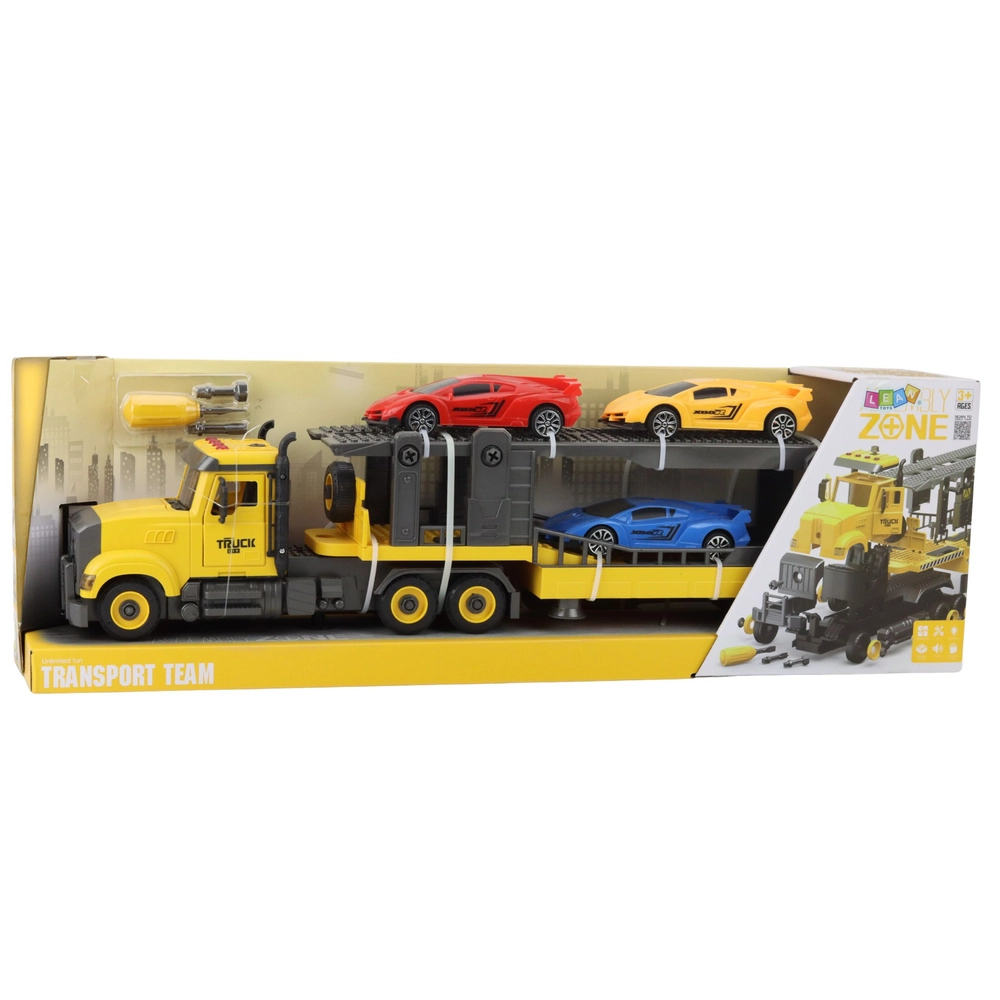 Camionul remorcher pliabil, distractiv, oferă copiilor ore de joc creativ. Oferă efecte de lumină și sunet, trei mașinuțe sport și un șurubelniță cu 3 capete pentru demontarea și asamblarea pieselor. Dimensiunile robuste și execuția sigură asigură distracție sigură și realistă, precum și dezvoltarea motricității fine și a gândirii logice.