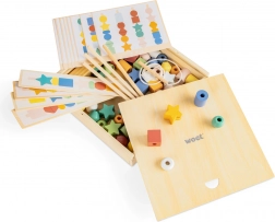 Descoperiți un set creativ din lemn pentru sortare și înșirare, care dezvoltă îndemânarea și imaginația copiilor. Prin joacă, copiii își exersează motricitatea fină, gândirea logică și recunoașterea culorilor și formelor datorită celor 56 de mărgele, cardurilor model și suporturilor practice de sortare – toate păstrate într-o cutie rezistentă din lemn cu capac.