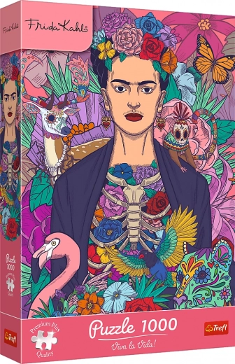 Puzzle Trefl Premium Plus 1000 de piese cu motivul Frida Kahlo – Suflet înflorit. Carton de calitate, decupaje precise, model inclus și ambalaj ecologic certificat FSC.