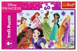 Descoperă magia basmelor cu puzzle-ul pentru copii Trefl cu motiv DISNEY PRINȚESE. Puzzle-ul cu 60 de piese este ideal pentru copii, dezvoltă răbdarea, motricitatea și gândirea logică. După asamblare, puzzle-ul are dimensiunea de aprox. 33 × 22 cm.