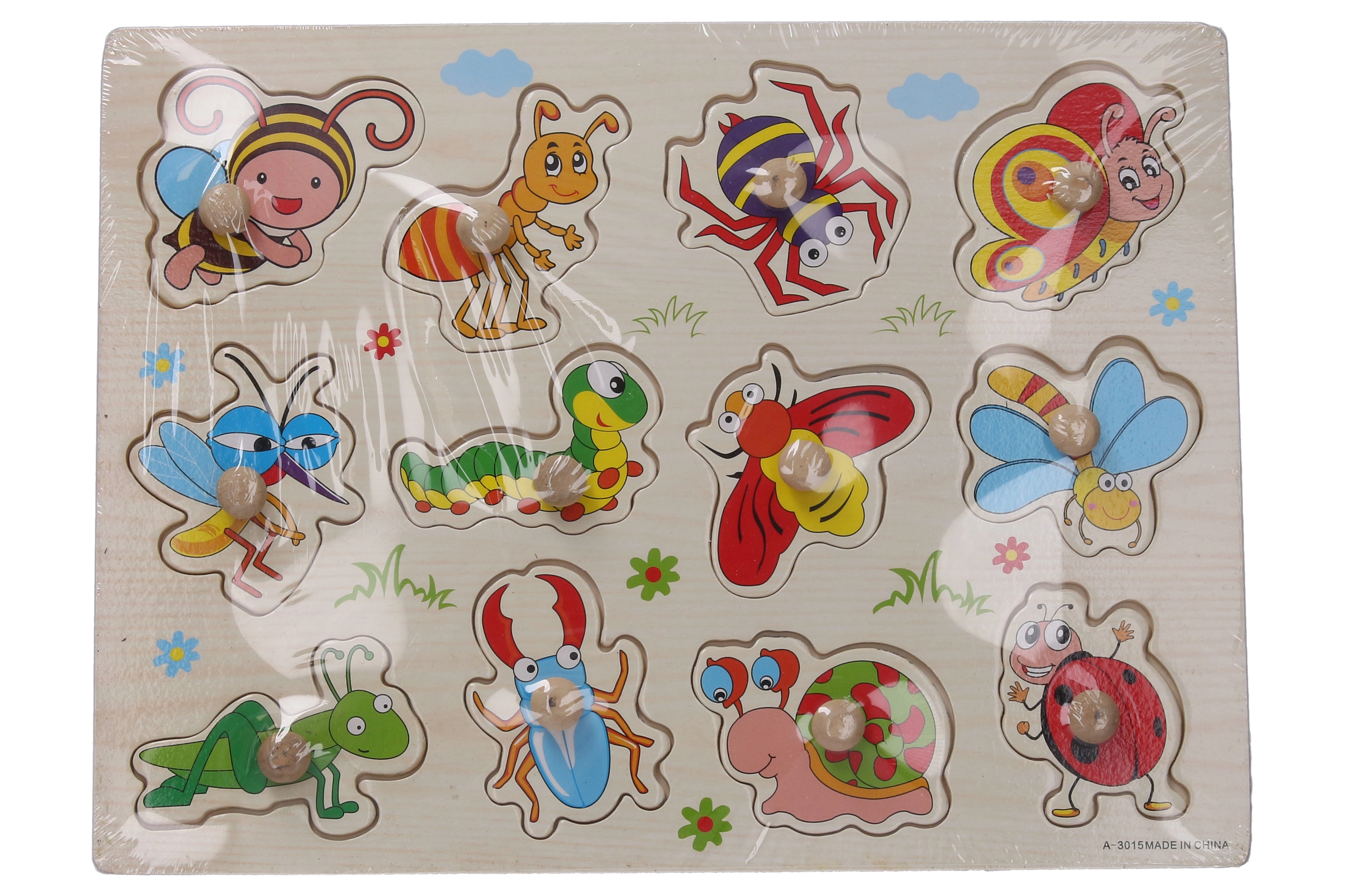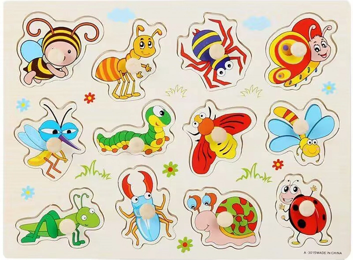 Descoperă o jucărie distractivă și educativă pentru cei mici: puzzle din lemn cu tematică de insecte, cu dimensiunile 30 × 22,5 × 1 cm. Ajută la dezvoltarea motricității fine, a logicii și a recunoașterii formelor și animalelor.