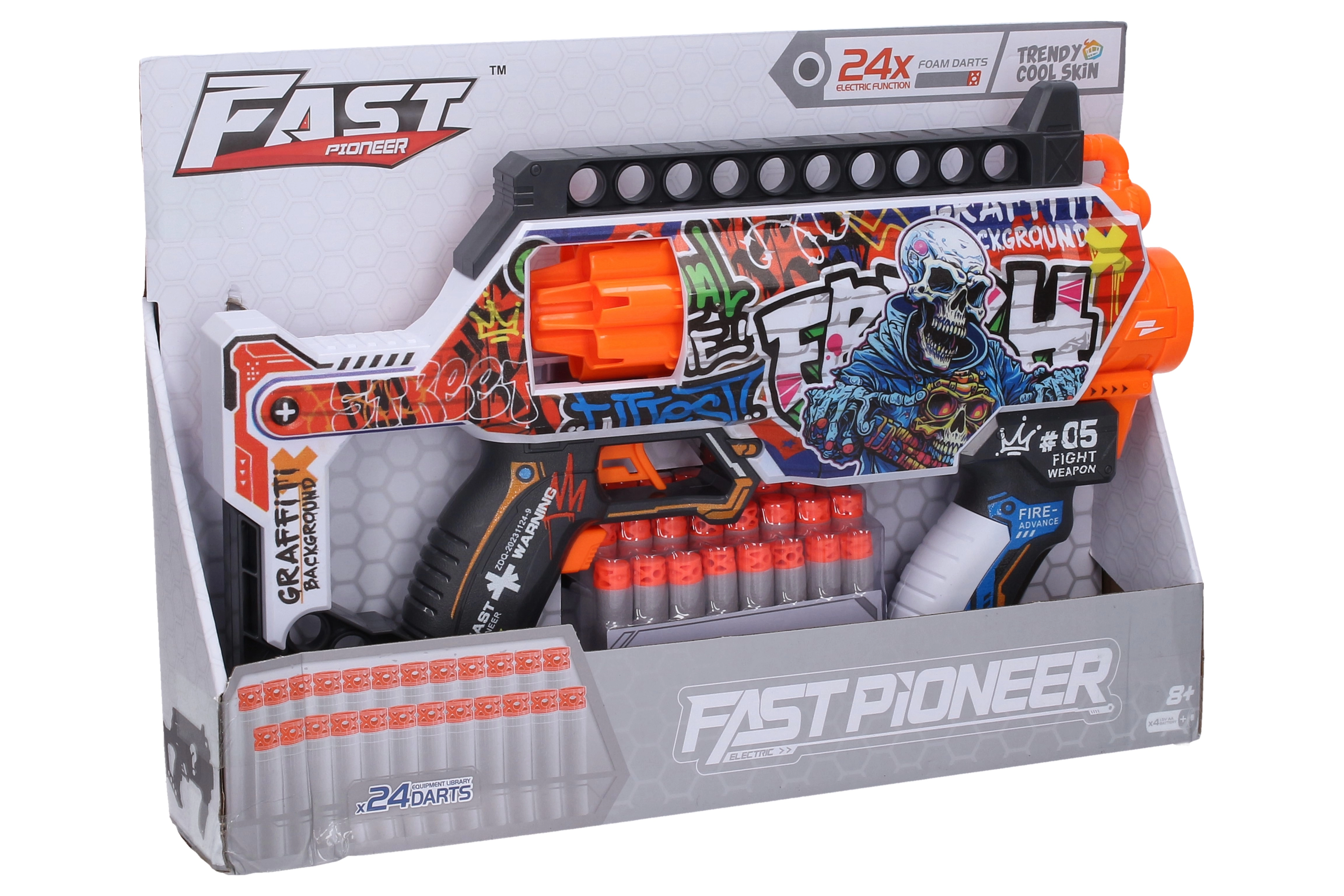Pachetul include 24 de gloanțe din spumă, astfel încât puteți începe imediat și vă puteți bucura de sesiuni de joc mai lungi fără realimentări frecvente. Ideal pentru bătălii pentru copii, antrenament de precizie și jocuri de echipă în grădină.
