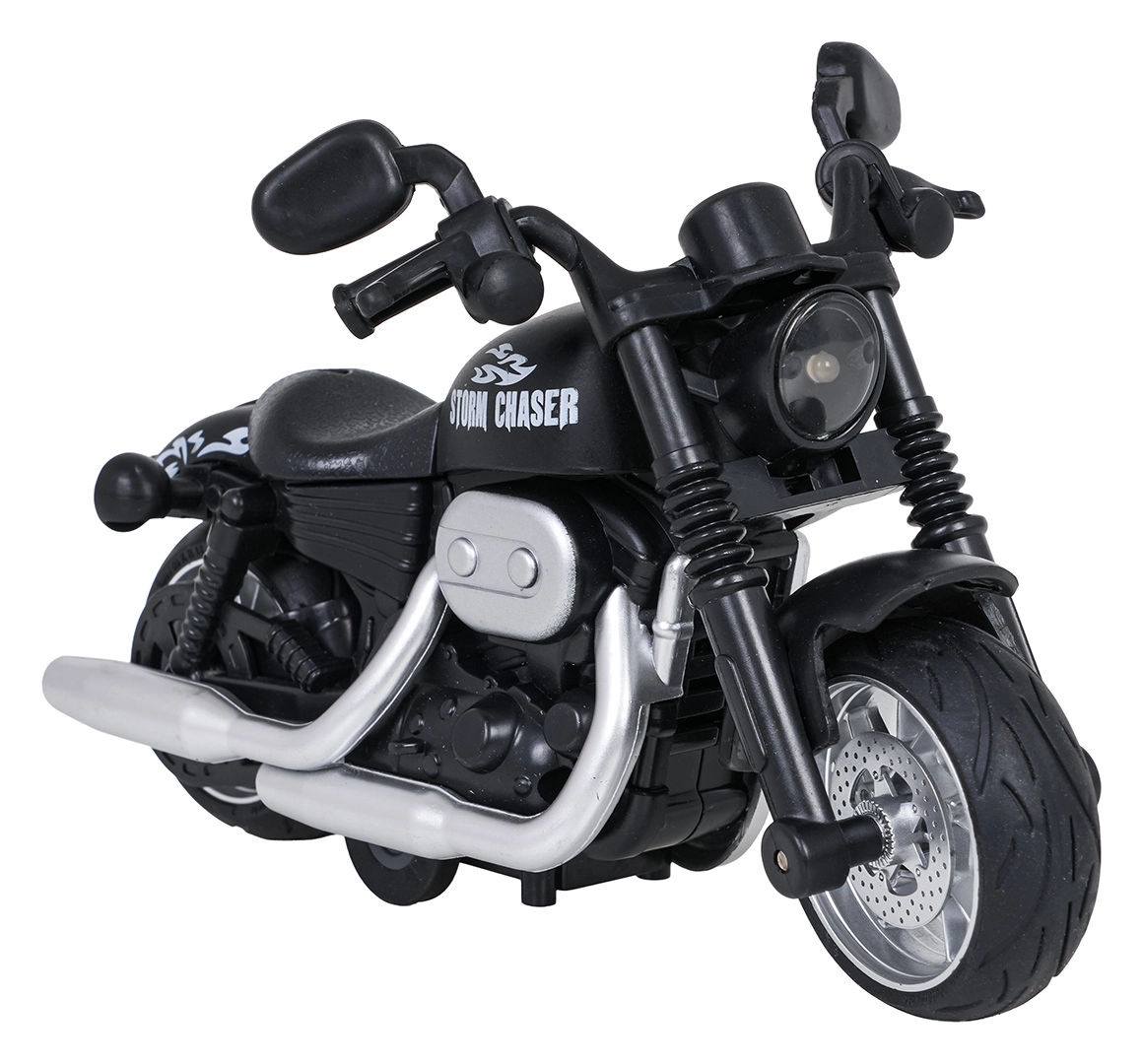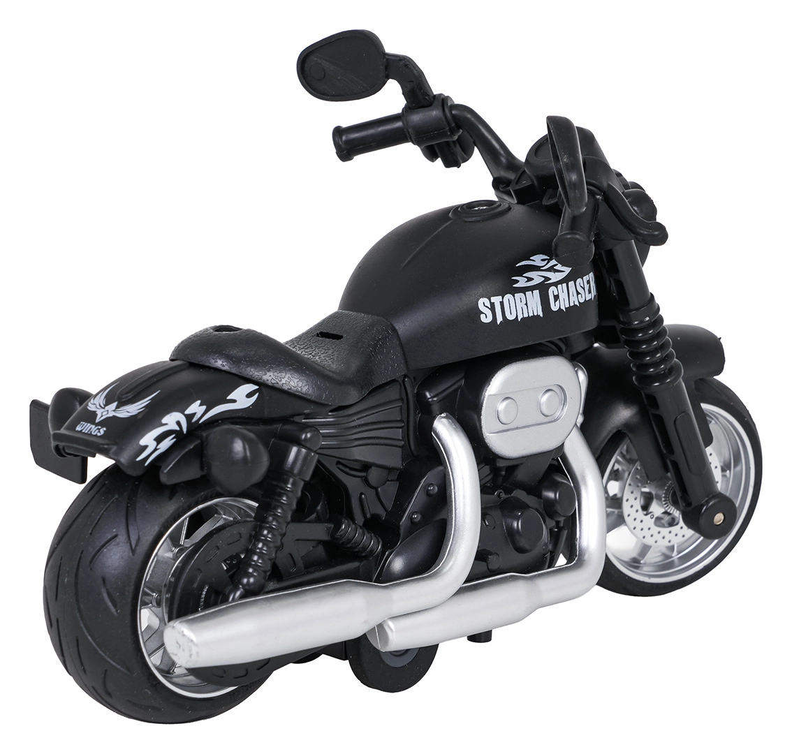 Bucurați-vă de o cursă plină de acțiune cu modelul de motocicletă STORM CHASER, finisat în detaliu. Construcția metalică robustă, detaliile fidele ale motorului și eșapamentului, precum și anvelopele din cauciuc asigură un aspect excelent și rezistență la joacă. Datorită mecanismului pull-back, este suficient să trageți și să eliberați – motocicleta va porni înainte.