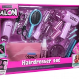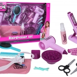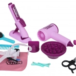 Pachetul include un uscător pentru copii cu două capete (difuzor și concentrator), care emite sunet de uscare și oferă un flux ușor de aer pentru o experiență autentică. Placa pentru copii este alimentată cu baterii tip pastilă și are efect luminos. Setul este completat de pieptene, perie, foarfecă, foarfecă de filat, agrafe, bigudiuri și o sticluță pentru „cosmetice” – perfect pentru joc creativ și dezvoltarea motricității fine.