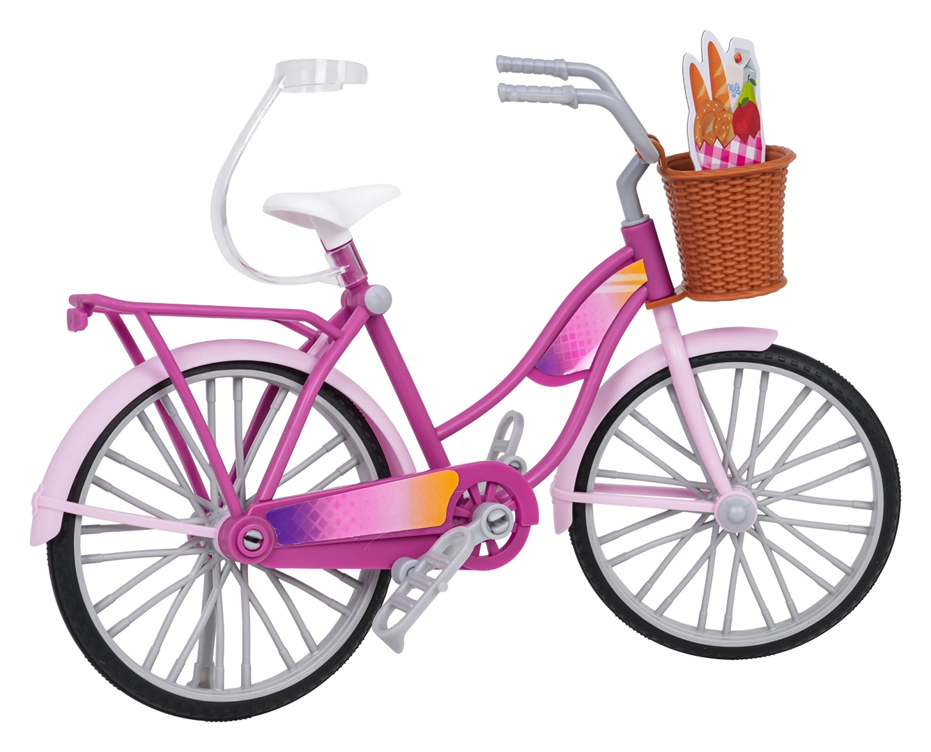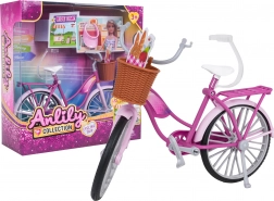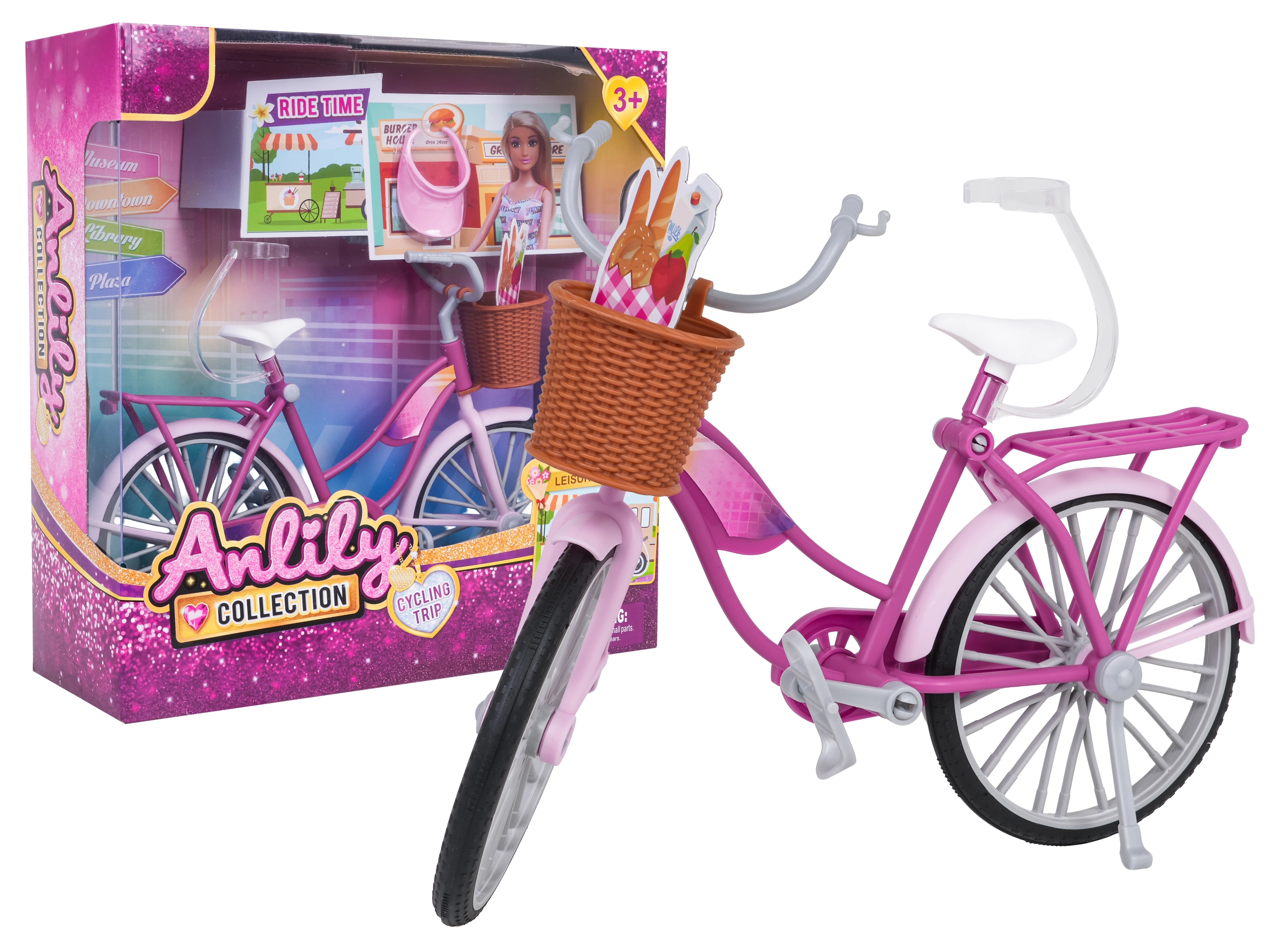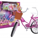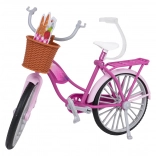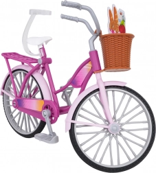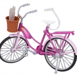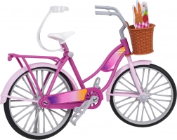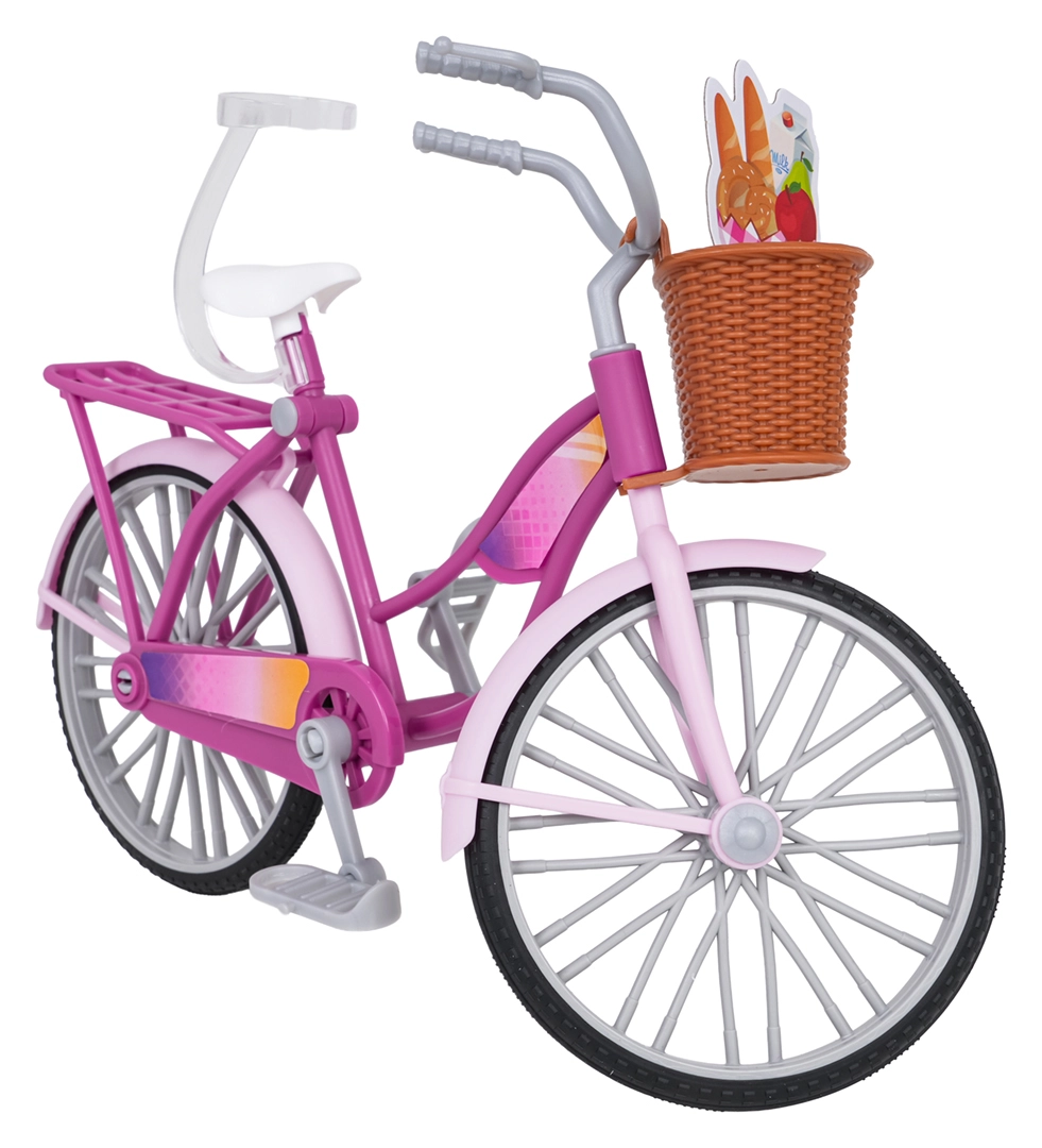 Bicicleta roz adorabilă pentru păpuși îi va încânta pe cei mici de la 3 ani. Are o construcție a cadrului realizată cu atenție la detalii, roți, pedale și ghidon mobile, un coș frontal pentru mărunțișuri și portbagaj spate. Include și un cric pentru parcare stabilă și o șapcă pentru păpușă. Fabricată din materiale de calitate, în culori vii – ideală ca cadou creativ pentru micii iubitori ai jocului de rol.