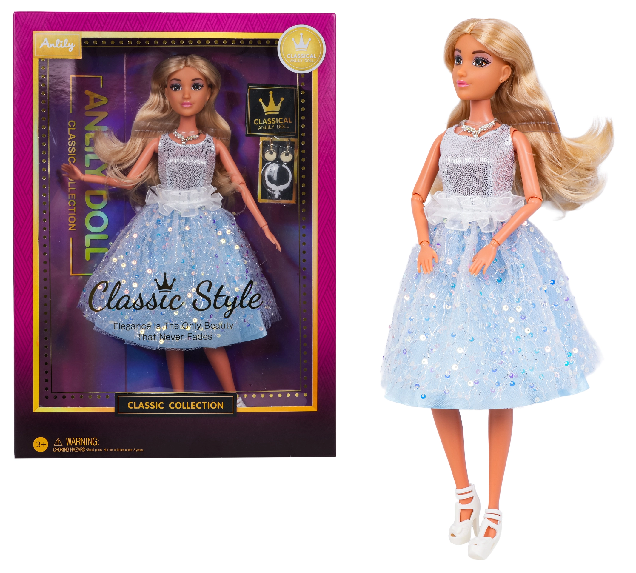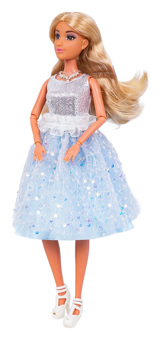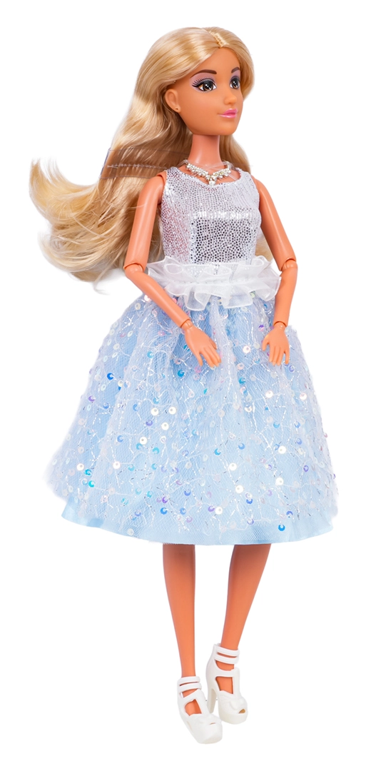Păpușă stilată pentru copii de la trei ani, realizată din materiale de calitate, cu atenție la detalii. Are păr realist, lung și fin, potrivit pentru pieptănat și împletit, rochie de seară sclipitoare și pantofi albi cu toc. Membrele mobile, cu articulații la coate și genunchi, permit poziții naturale și fac joaca la defilări de modă sau baluri și mai distractivă.