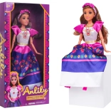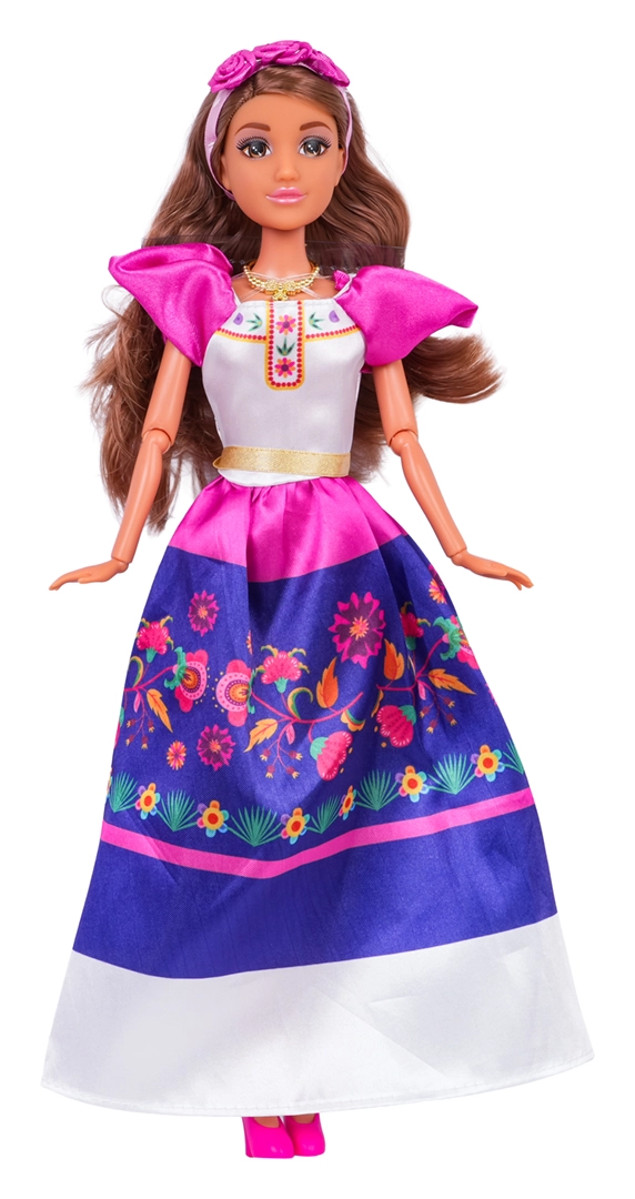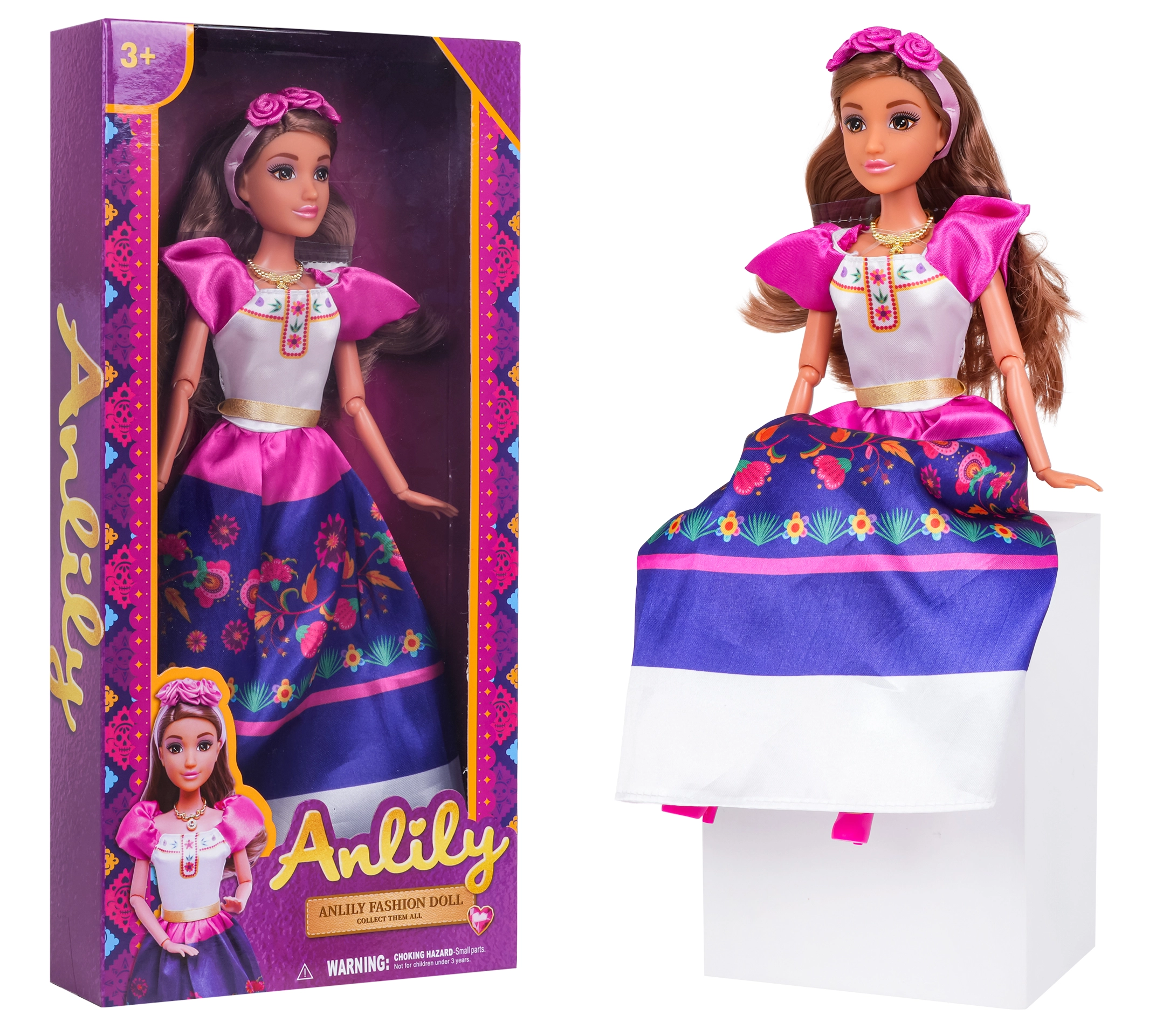 Modelul este realizat cu accent pe detalii și durabilitate, pentru a rezista jocului zilnic. Părul lung șaten poate fi pieptănat și aranjat în diverse coafuri, ceea ce susține motricitatea fină și creativitatea copiilor.