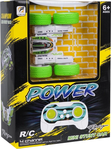 Mașina RC de cascadorii POWER STUNT la scară 1:32 este concepută pentru distracție dinamică. Roțile mari, din cauciuc cu aderență ridicată permit mers înainte și înapoi, lateral, răsturnări și trucuri acrobatice, inclusiv rotații la 360°. Caroseria robustă din plastic rezistă la impacturi, fiind ideală pentru podele de interior și suprafețe exterioare netede.