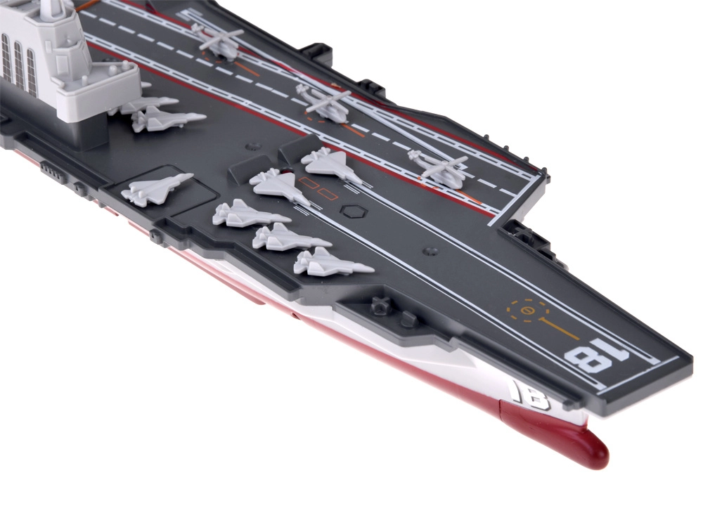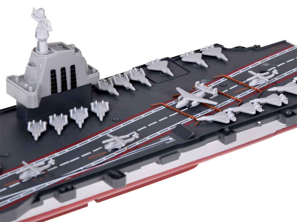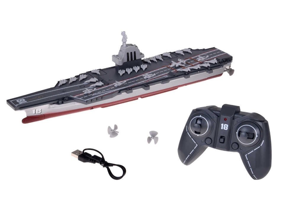 Această navă portavioane cu telecomandă reproduce fidel o punte reală cu marcaje de pistă, „insula” cu turnul și o flotă de avioane miniaturale. Datorită controllerului tip gamepad, clar și intuitiv, controlul este ușor – înainte/înapoi, stânga/dreapta – iar încărcarea USB asigură utilizare comodă acasă și la apă.