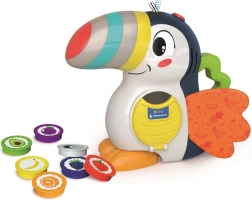 Descoperiți primele lecții prin joacă alături de un prieten adorabil – tucanul interactiv Adrian de la CLEMENTONI. Copilul introduce jetoane tematice cu simboluri ale fructelor și culorilor, iar ciocul tucanului reacționează prin lumină în nuanțele corespunzătoare. Astfel sunt stimulate percepția vizuală, gândirea logică și dezvoltarea vocabularului.