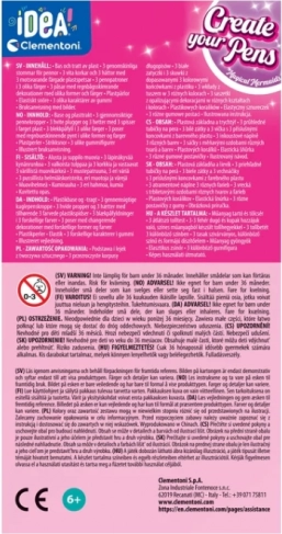 Cu setul creativ CLEMENTONI IDEA, copiii își vor realiza 3 pixuri originale cu motive marine și decorațiuni plutitoare. Utilizare simplă datorită suportului și pâlniei practice, pentru umplere comodă și fără murdărie. Rezultatul este spectaculos – micile decorațiuni din interiorul pixului plutesc liber în apă după umplere, creând un aspect magic.