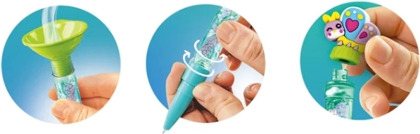 Acest set creativ din gama CLEMENTONI IDEA le permite copiilor să creeze 3 pixuri unice cu decorațiuni care plutesc în apă. Datorită suportului și pâlniei incluse, umplerea este simplă, curată și distractivă. Rezultatul este spectaculos și îi va încânta pe micii creatori.