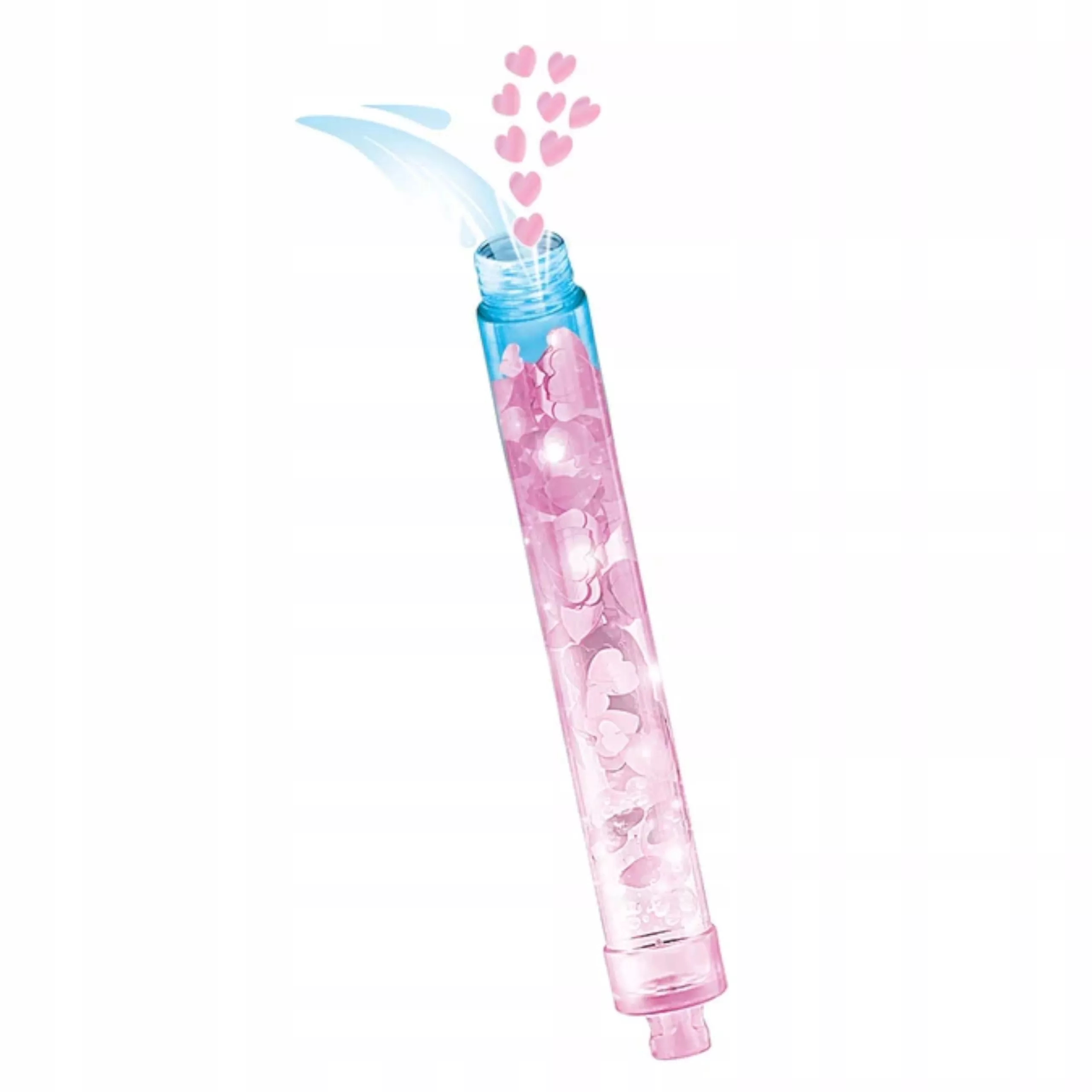 Tuburile transparente cu inimioare colorate și sclipici oferă fiecărui pix un aspect strălucitor și un stil unic.
