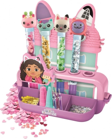 Descoperă „fabrica” distractivă de pixuri inspirată de universul GABBY’S DOLLHOUSE. Copiii pot proiecta și decora propriile pixuri, combinând culori, sclipici și simpatice motive cu pisicuțe. Setul este ideal pentru micii creatori care iubesc proiectele creative și vor să aibă rechizite școlare pe gustul lor.