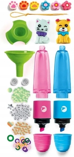 Cu setul creativ Clementoni Idea – Sweet Pets, copiii vor asambla și decora 2 evidențiatoare originale exact pe gustul lor. Datorită cernelurilor colorate, decorațiunilor drăguțe și instrumentelor simple, vor rezulta accesorii școlare unice, care stimulează imaginația și bucuria de a crea.