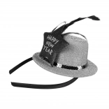 Întâmpină noul an cu stil! Această bentiță elegantă cu mini joben, într-o nuanță aurie lucioasă, adaugă șarm ținutei tale de party și atrage cu siguranță privirile. Datorită elasticelor, pălărioara stă foarte bine pe cap și este confortabilă chiar și la purtare îndelungată.
