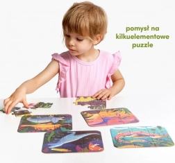 Jocul cu puzzle-uri susține abilități esențiale: coordonarea mână–ochi, recunoașterea formelor și culorilor și concentrarea. Poți folosi puzzle-urile și ca decor pentru a povesti propriile tale aventuri și pentru a descoperi fascinanta eră a dinozaurilor.