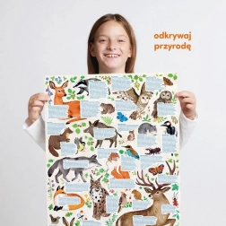 În pachet se găsește un poster plin de fapte despre locuitorii pădurilor și pajiștilor – ideal pentru micii exploratori.