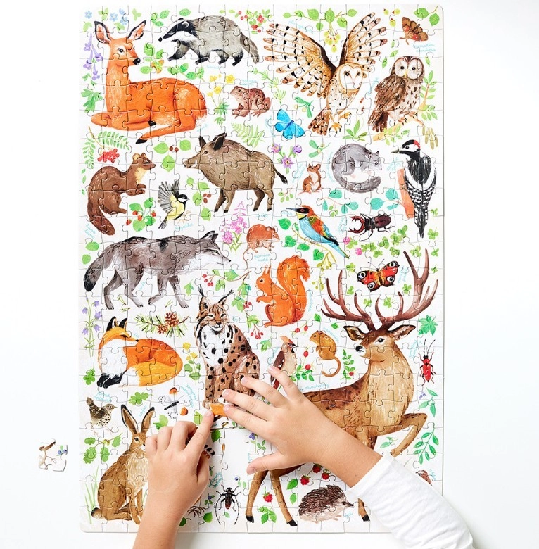 Descoperă farmecul pădurii și al pajiștilor cu puzzle-ul de 300 de piese, mare și frumos ilustrat. Copiii și adulții se vor bucura de distracție educativă, dezvoltarea motricității fine și a gândirii logice. Pachetul include și un poster cu fapte despre animalele din pădure, care stimulează curiozitatea și învățarea prin joc.