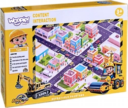 - 1× covoraș, 3× marker cu apă, 3× ștampilă cu apă, 1× rola, set de șabloane cu litere și forme, 1× mașinuță (metal și plastic), 1× suport pentru ștampile și rola