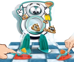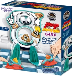 Jocul de familie distractiv Woopie Tragerea căcățeilor în toaletă aduce o competiție rapidă și veselă pentru doi jucători. Fiecare jucător lansează căcăței din plastic din propria catapultă către toaleta zâmbitoare – cine își curăță primul partea, câștigă! Datorită construcției ușoare, marginilor netede și manevrării simple, este ideal pentru seri în familie, petreceri pentru copii și ca cadou amuzant pentru copii de la 4 ani.