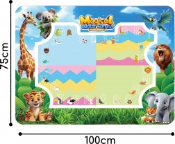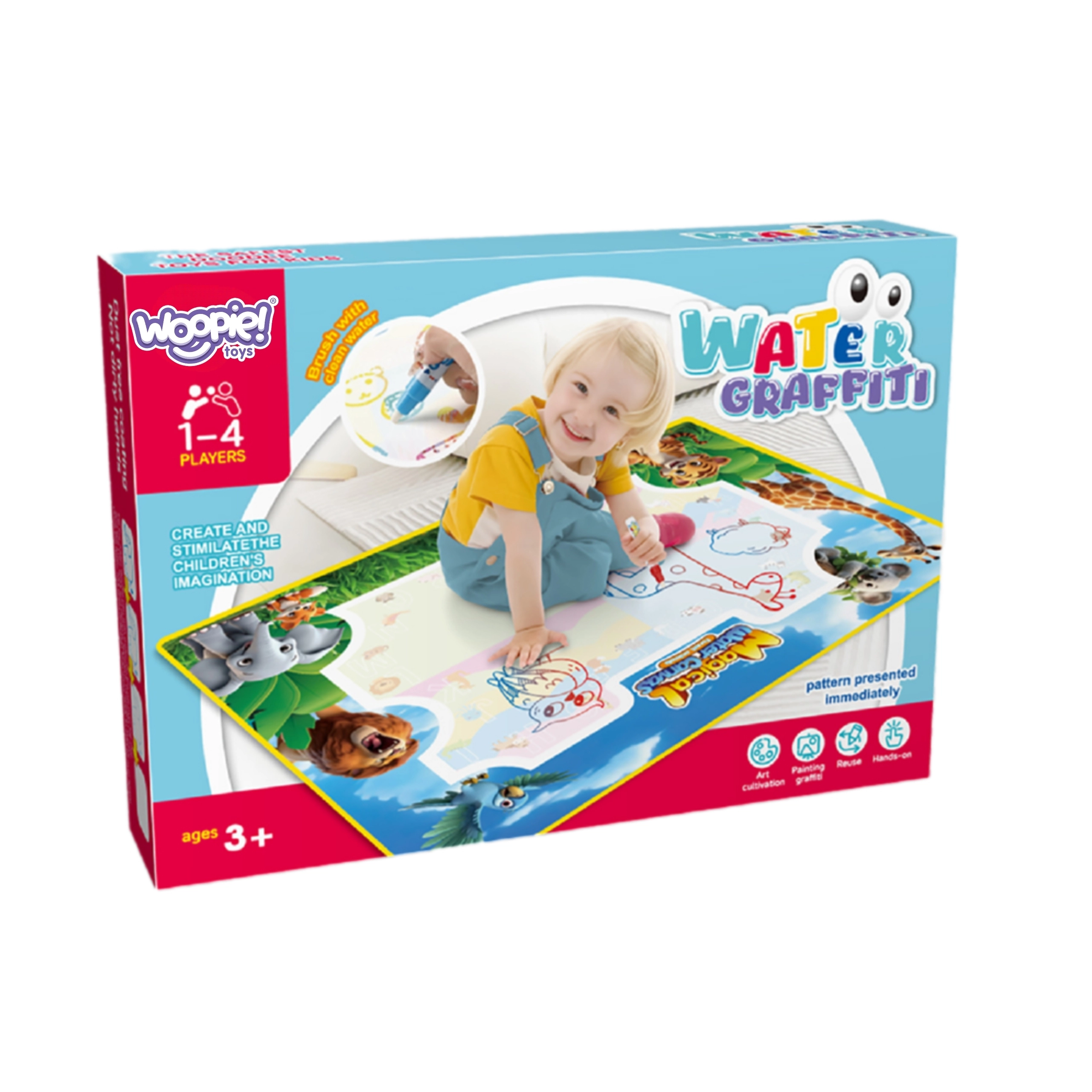 Covorașul cu apă Woopie este o jucărie educativă inteligentă care susține motricitatea fină, gândirea logică și concentrarea – și asta fără cerneală, chimicale și pete. Grafica veselă cu tematică safari motivează învățarea prin joacă, în timp ce suprafața cu uscare rapidă garantează repetări nesfârșite.